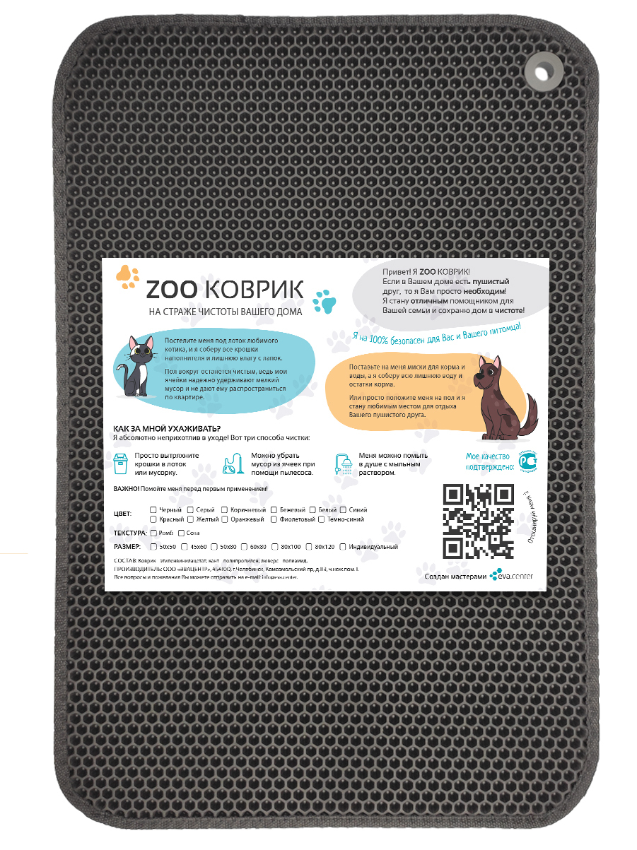 ZOOКОВРИК предназначен для поддержания чистоты и порядка дома, в котором есть пушистые друзья.