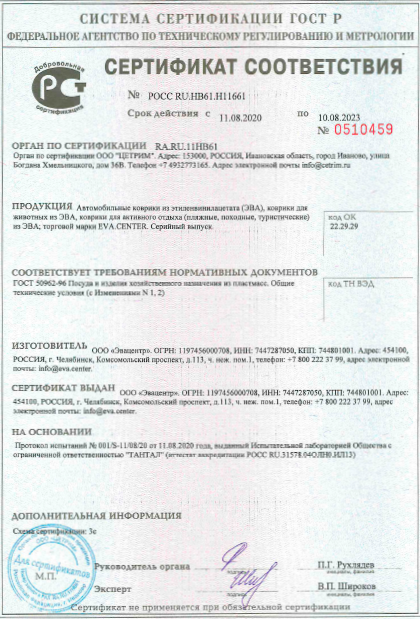 Компания eva.center изготавливает коврики только из высококачественного материала, в соответствии со всеми правилами и технологиями, регламентированными ГОСТ.