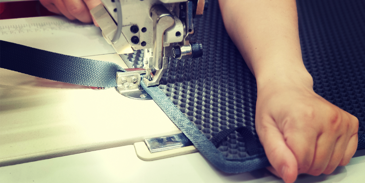 На последнем этапе наши специалисты пришивают коврику окантовку и закрепляют люверсы, если это предусмотрено заказом.